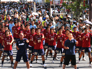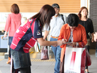 9月にはChallenge1特別プロジェクトとして「ミニコラレ」を実施。オリジナルユニフォームシャツを15,205名様へプレゼントし、岡山駅前の広場、岡山駅南地下のビジョンをファジアーノカラーの染めた。
